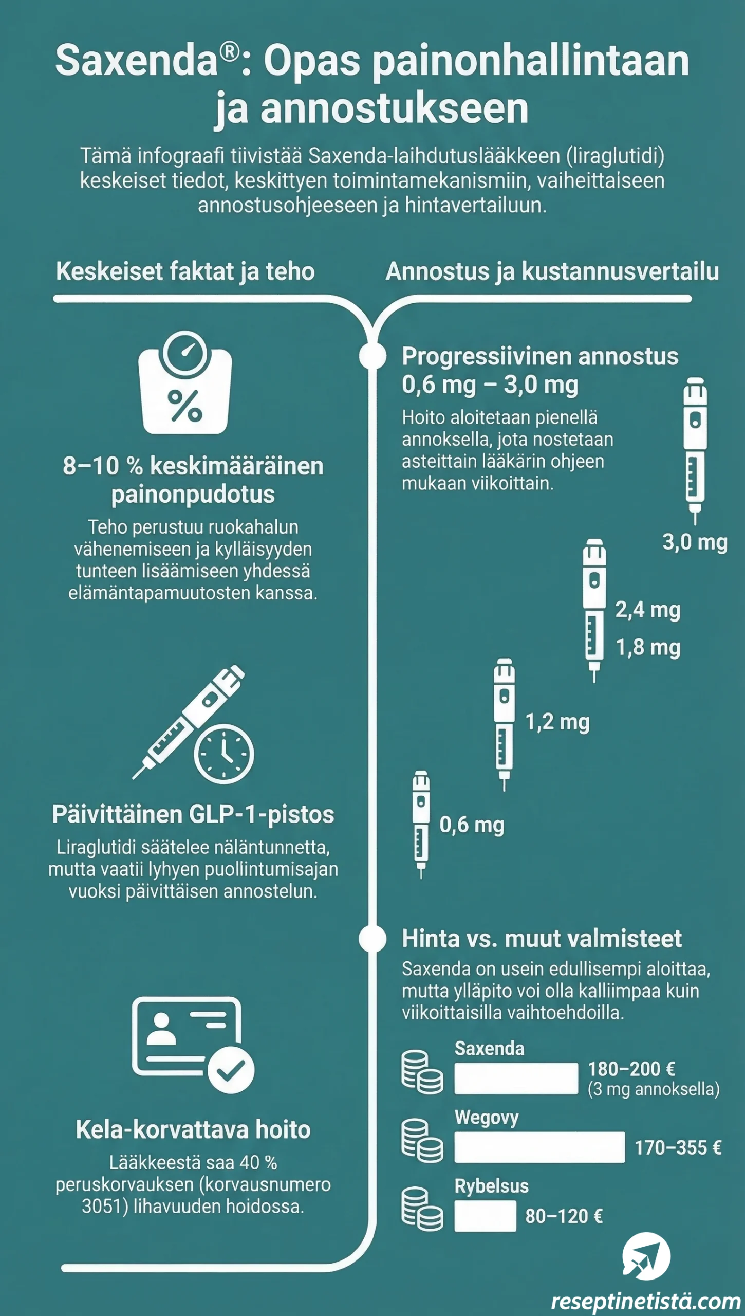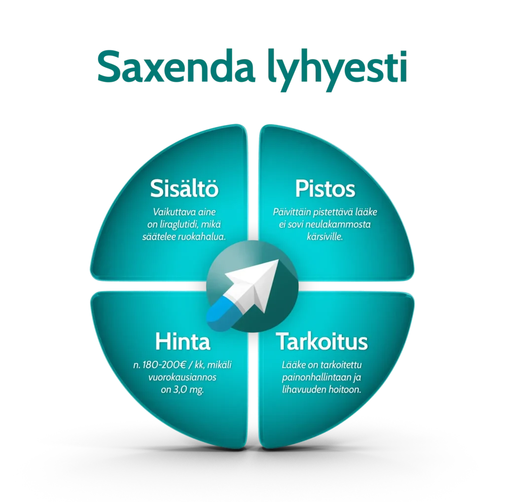 • Saxenda hinta on maksimiannoksella 180–200€/kk.